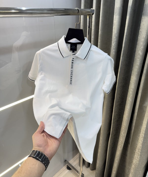 Armani Exchange White Zip Premium Polo T-Shirt
